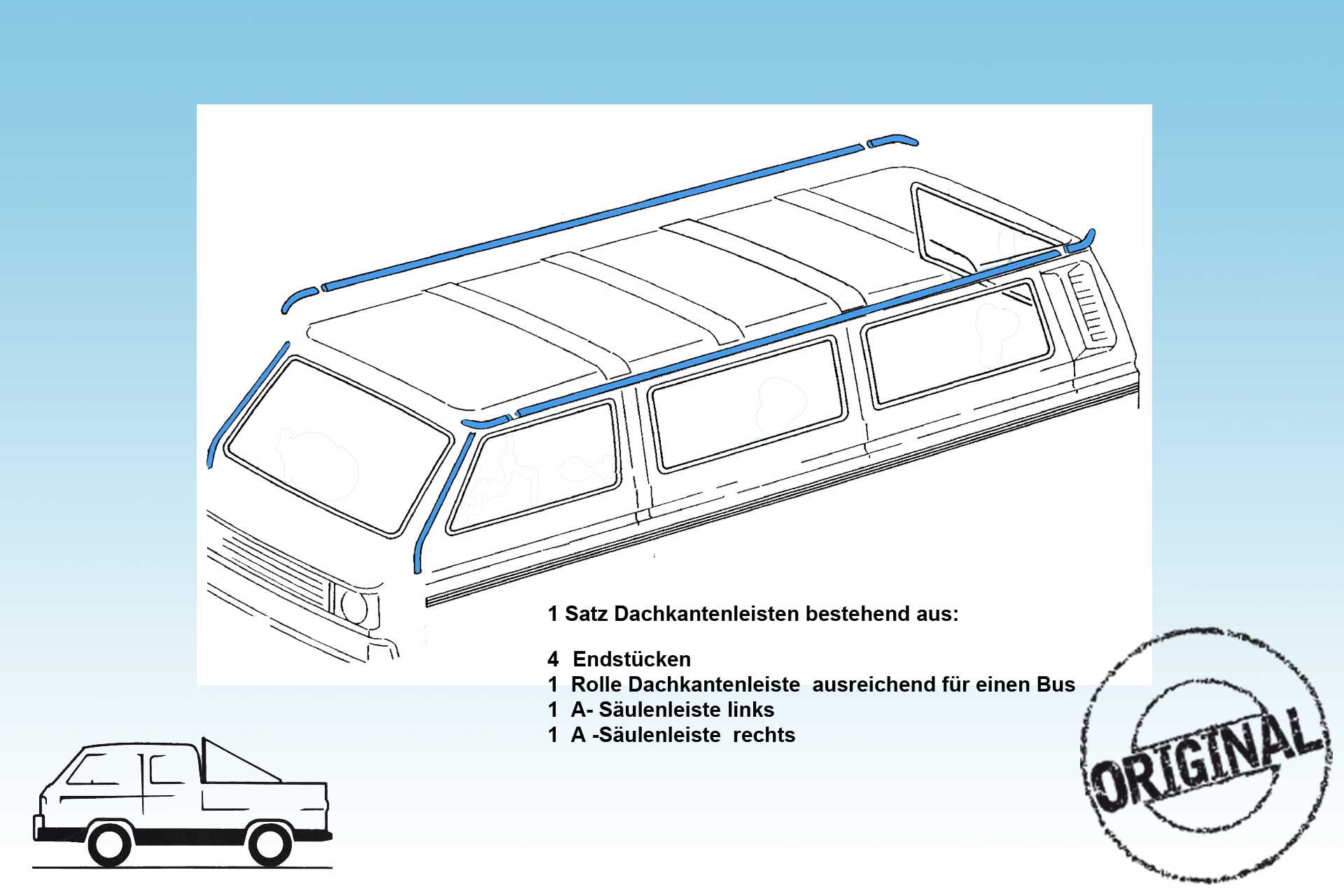 1 Satz Dachkantenleisten für den T3 Bus incl. der vier Eckstücke und der A - Säulenleisten - orig. VW