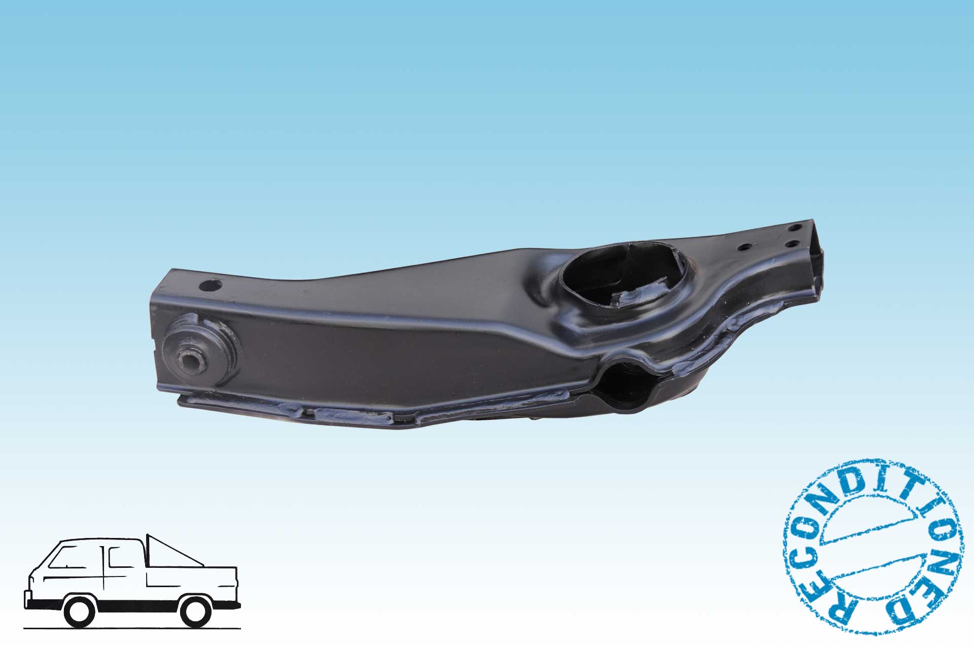 Querlenker rechts aus Blech mit neuer Lagerbuchse, passend für alle Bus T3 bis 09/84.
