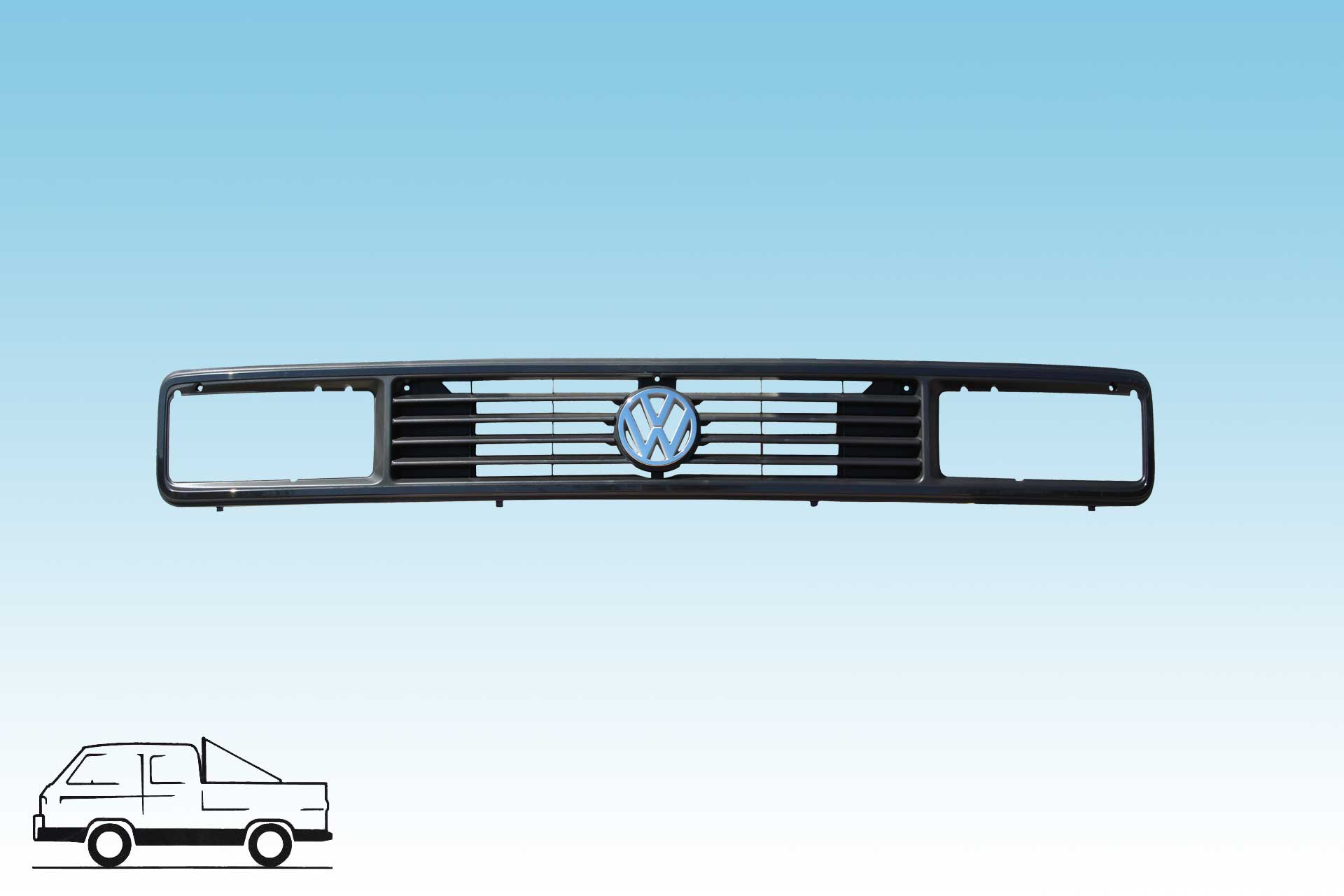 T3  Vanagon rectangular headlamp grille  w/o  chrome - comes with original 125mm emblem - very good reproduction