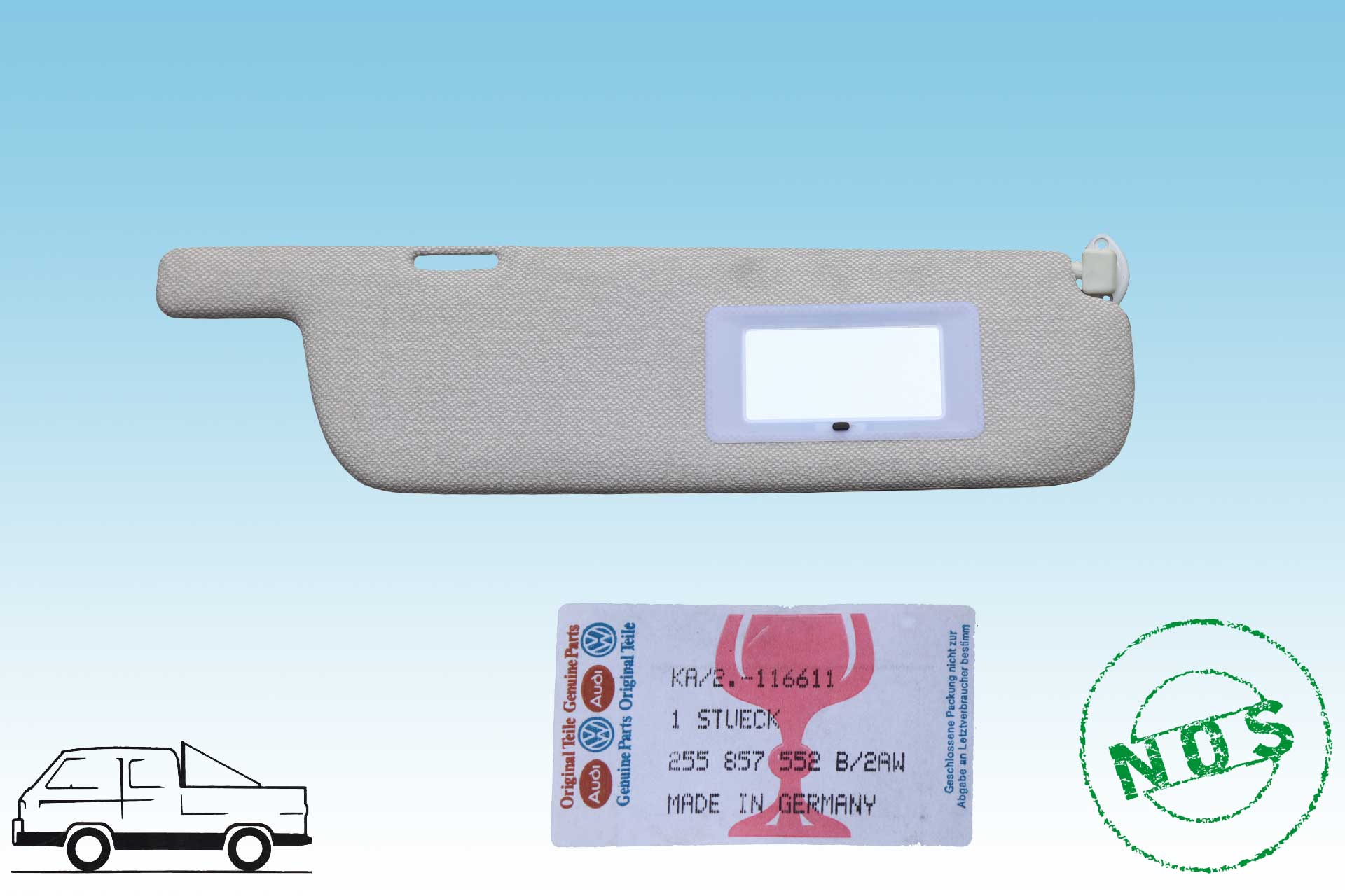 T3 vanagon right sun visor with make up mirror - very rare version in grey ( colour code 2AW ) genuine VW part
